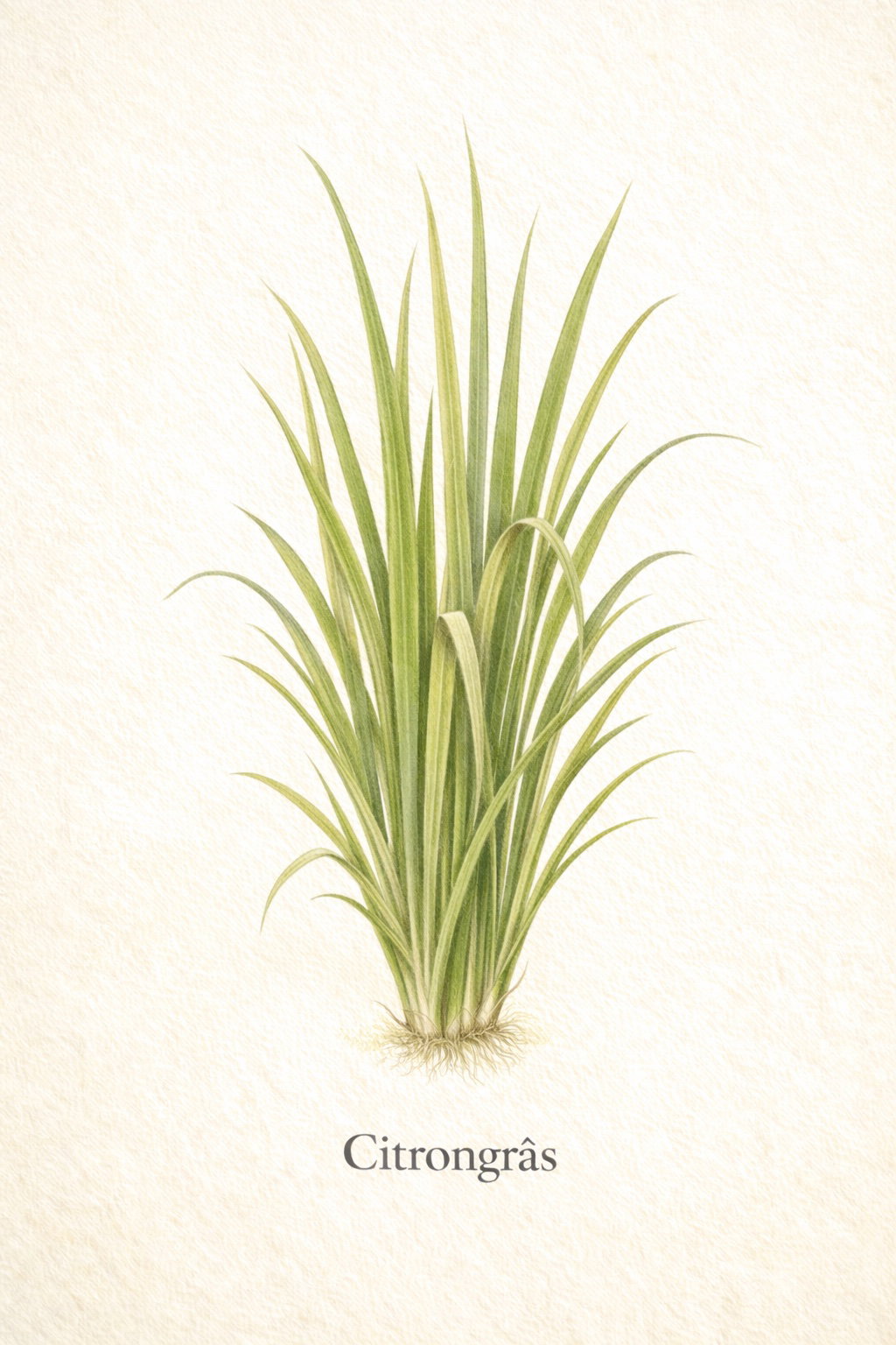 Citrongräs är en frisk och aromatisk växt med tydlig citruston. Den ger en känsla av lätthet och energi.