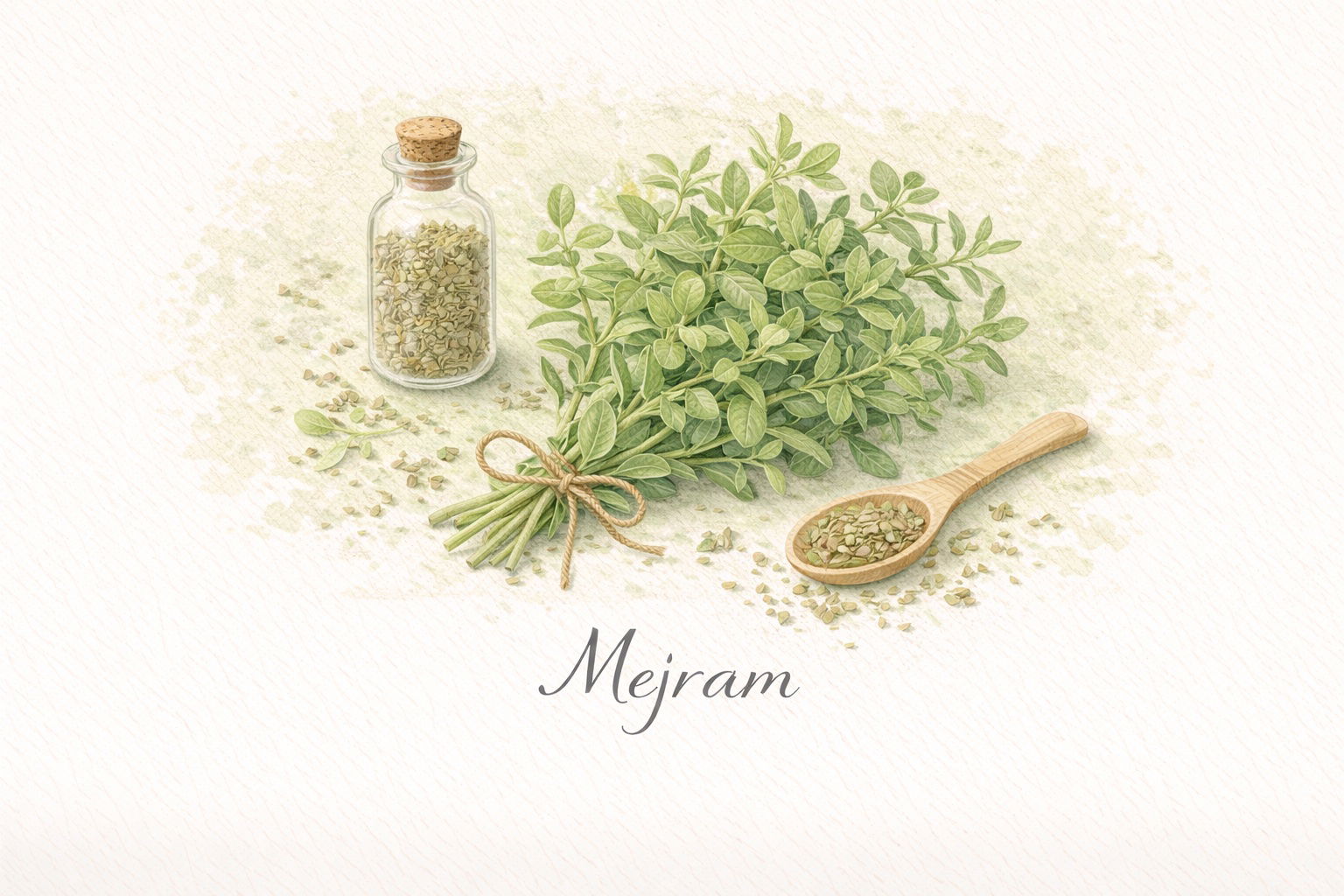 Mejram är en mjuk och aromatisk ört med en varm, rund smak som känns både mild och behaglig. Den påminner om oregano, men har en mer finstämd och balanserad ton. Doften är lätt kryddig med en mild sötma, och växten ger en känsla av lugn och harmoni. Mejram har länge använts i både matlagning och traditionell örtanvändning, där den uppskattas för sin mjuka karaktär. Den trivs i soliga lägen och växer fint både i kruka och på friland. Med sina små blad och sitt lugna uttryck blir den en fin del av en örtagård där variation och balans får ta plats. Att odla mejram är att bjuda in något varmt, stillsamt och harmoniskt i din vardag.